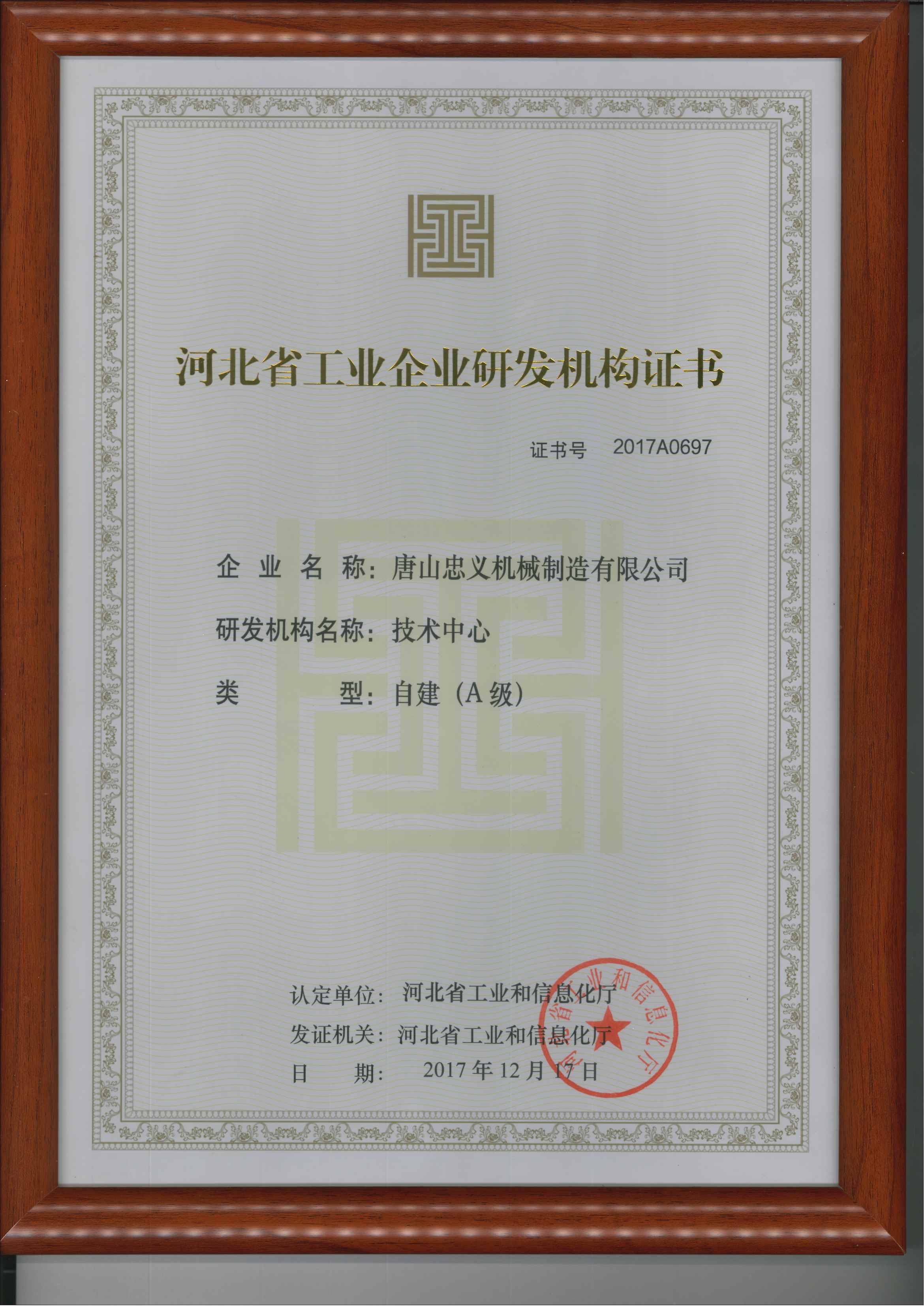 河北省工業(yè)企業(yè)研發(fā)機(jī)構(gòu)證書彩色原版 發(fā)布時(shí)間:2025-08-18 點(diǎn)擊: 262 上一條: 河北省專精特新中小企業(yè) 下一條: 河北省科技型中小企業(yè)證書(新)